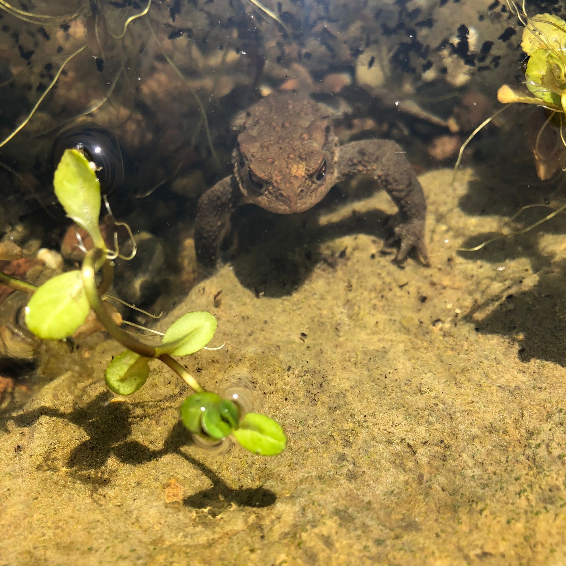 Es vergingen kaum zwei Wochen, da waren die ersten Molche, Libellen, Wasserläufer "eingezogen", und im Folgefrühjahr haben Kröten sich dort zum Laichen getroffen.